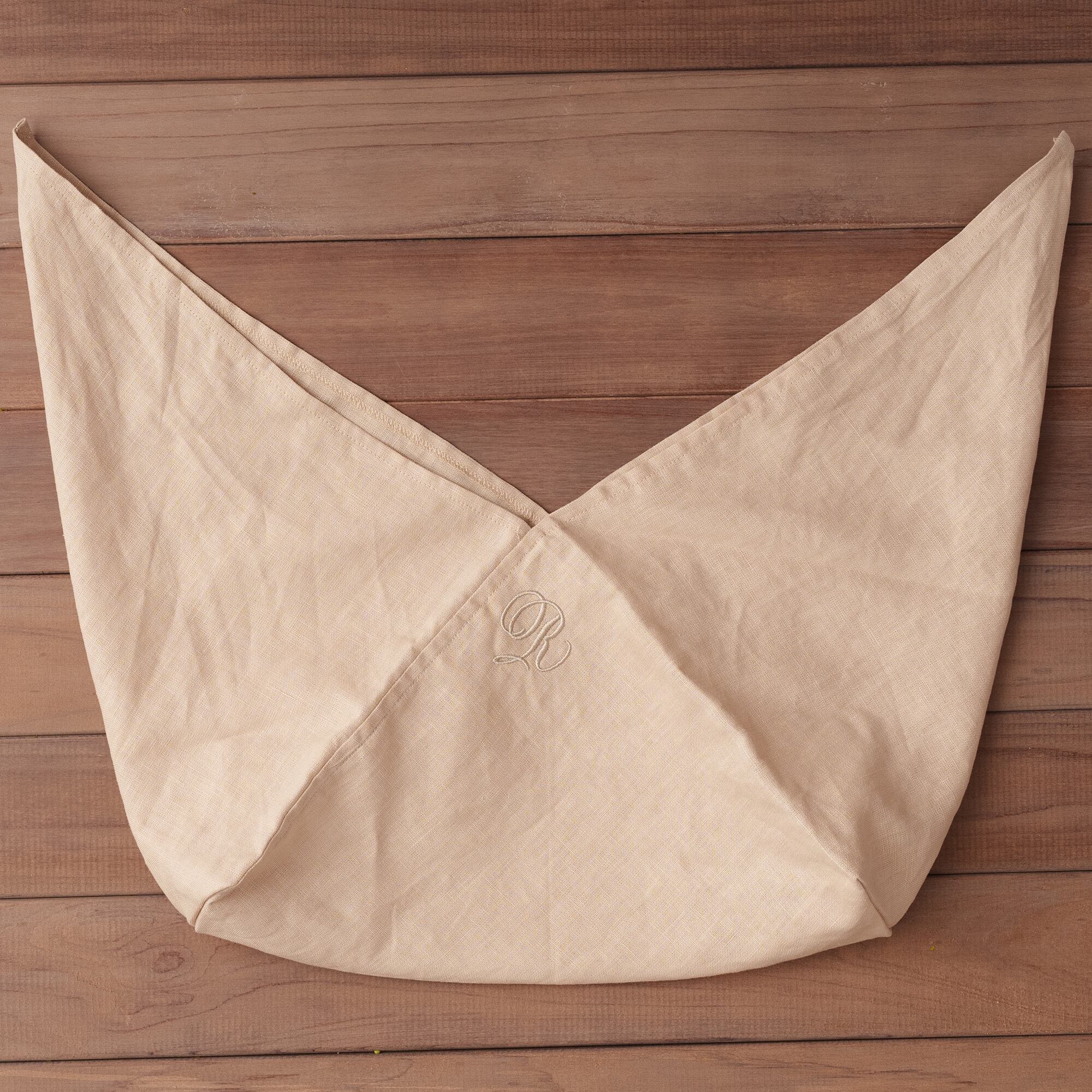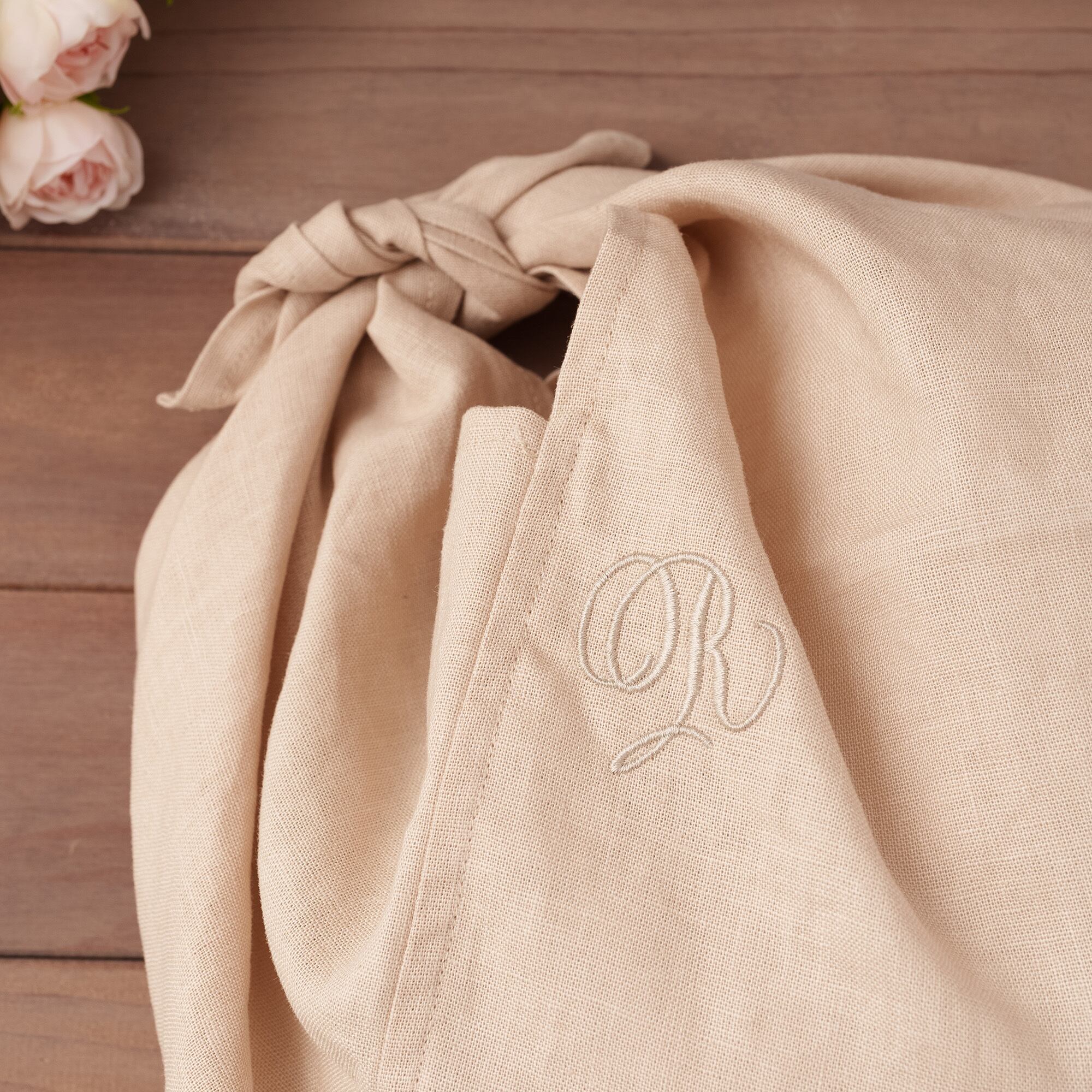 リネンを贅沢に使い、イニシャル刺繍を施したあずま袋です。