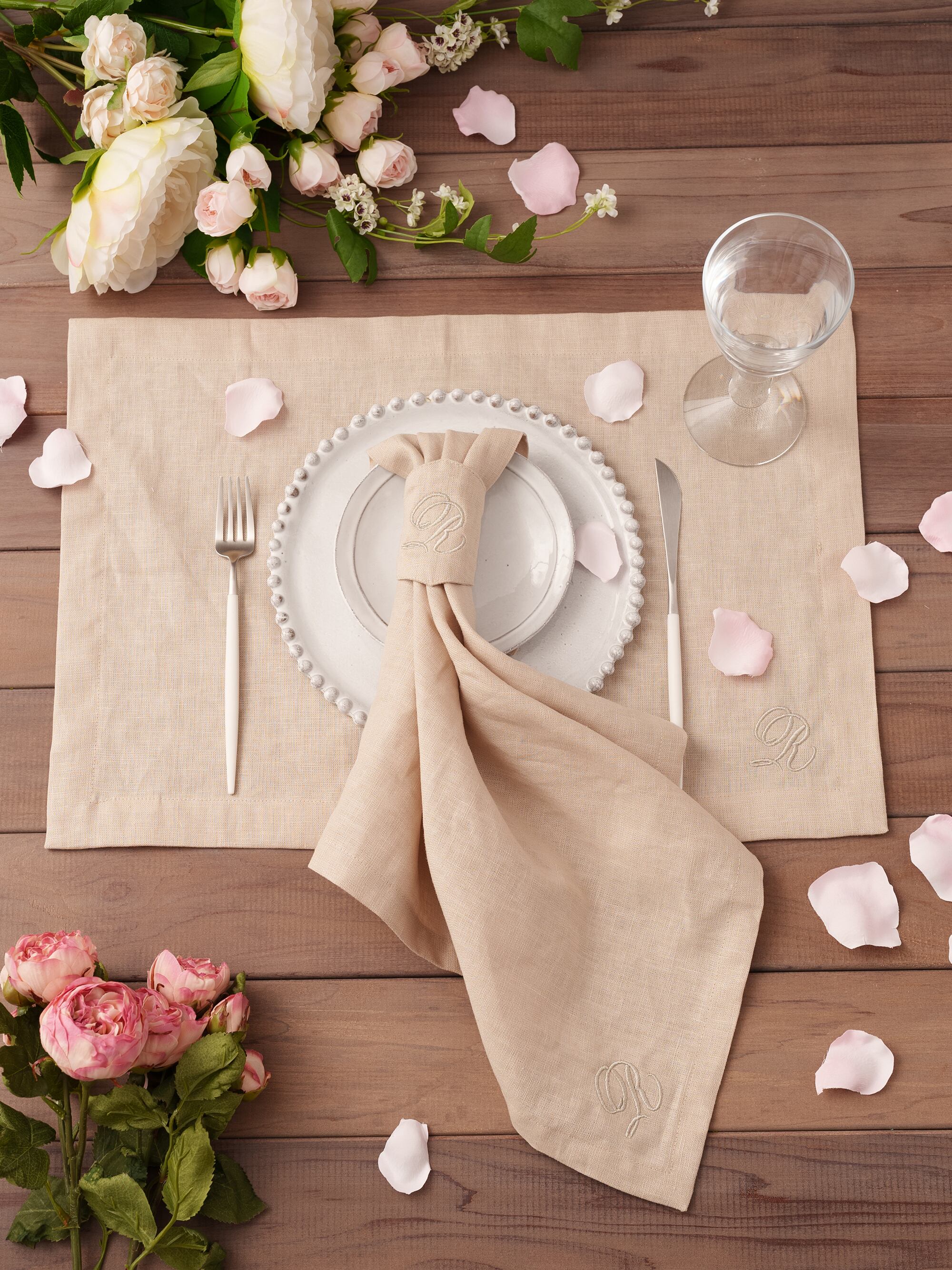 日本の縫製工場で丁寧に縫製したヘム仕立てのテーブルナプキンです。